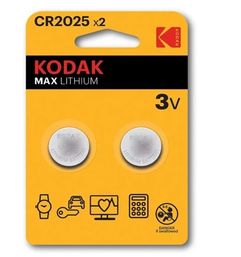 Kodak CR2025 3V Lithium Coin Cell - 2 Pack